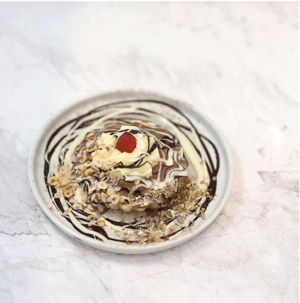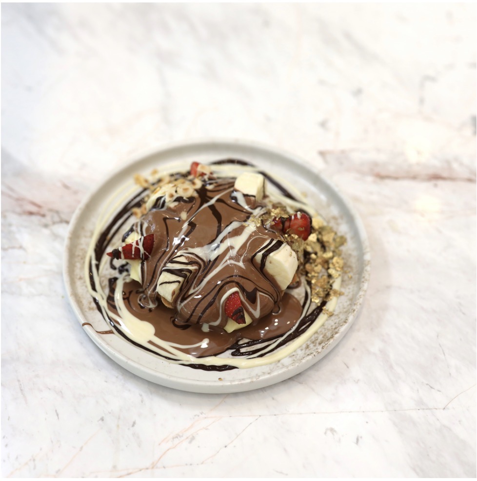 Badem unu ile hazırlanmış ağızda dağılan PANKA TART , içinde çilek ,callebaut krep kırıkları, üstüne sufle , çikolata